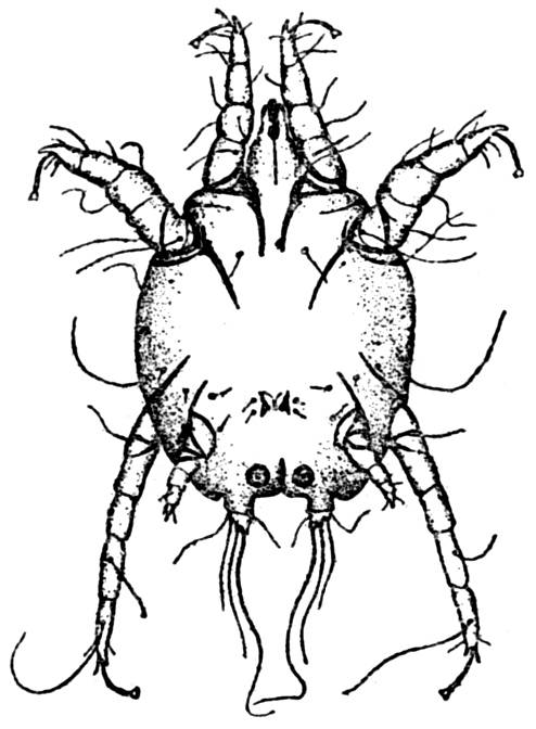 形態:癢螨呈長圓形,體長0.5-0.9mm。