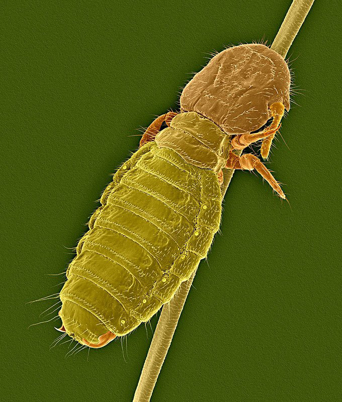 形態:蟲體左右扁平,體長1-3mm,體表有幾丁質,呈棕色,頭部三角形 。